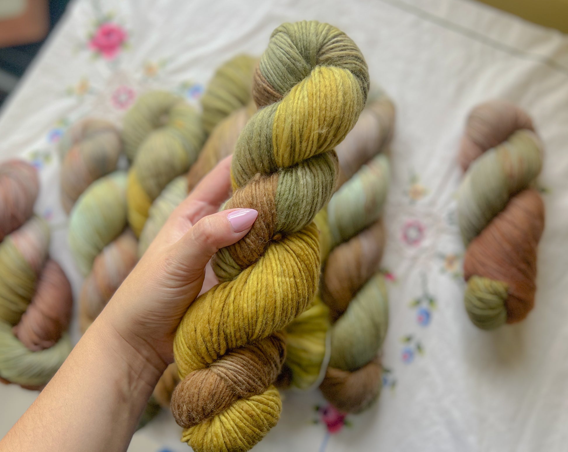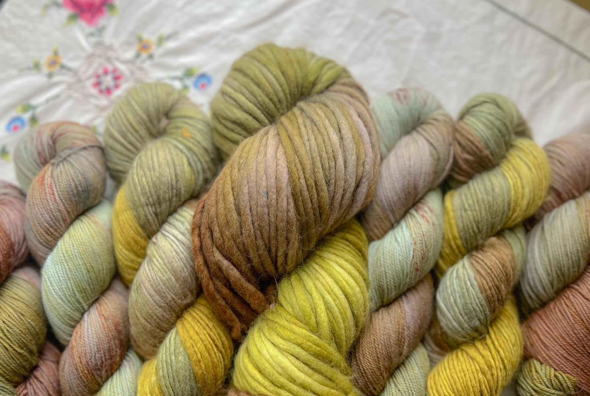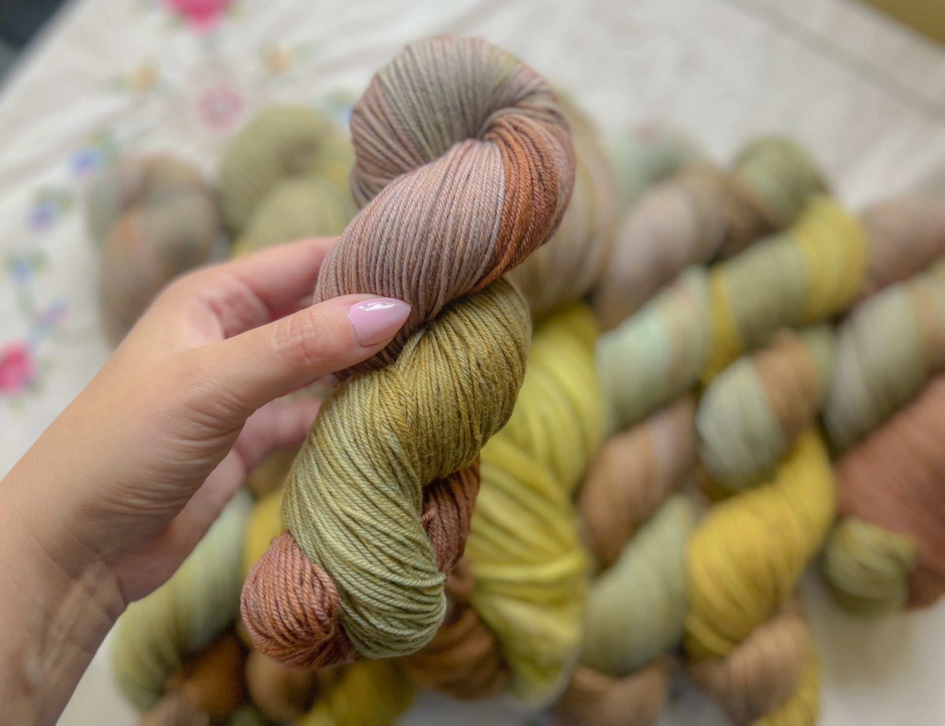 Forest Floor is all mossy greens, soft browns, and golden bits—like someone scooped up the woods and turned it into yarn. It’s earthy, cozy, and a little wild. Basically, if you’ve ever wanted your knitting to feel like a woodland walk (minus the bug bites), this is the skein for you.