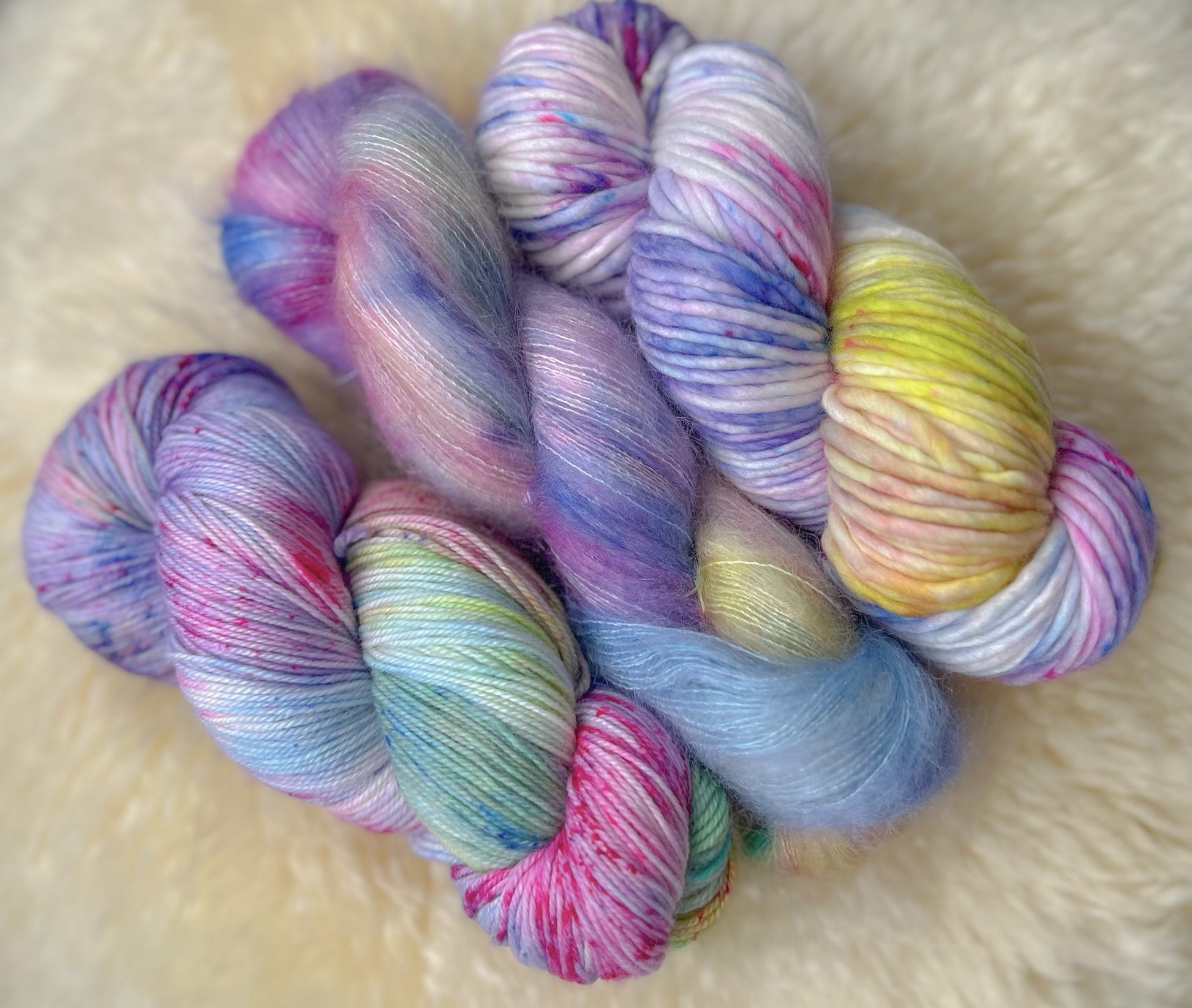 When ordering, you can choose which yarn base you’d like from the dropdown menu. Here’s a quick guide to each of our dog-named (and a few special) bases: