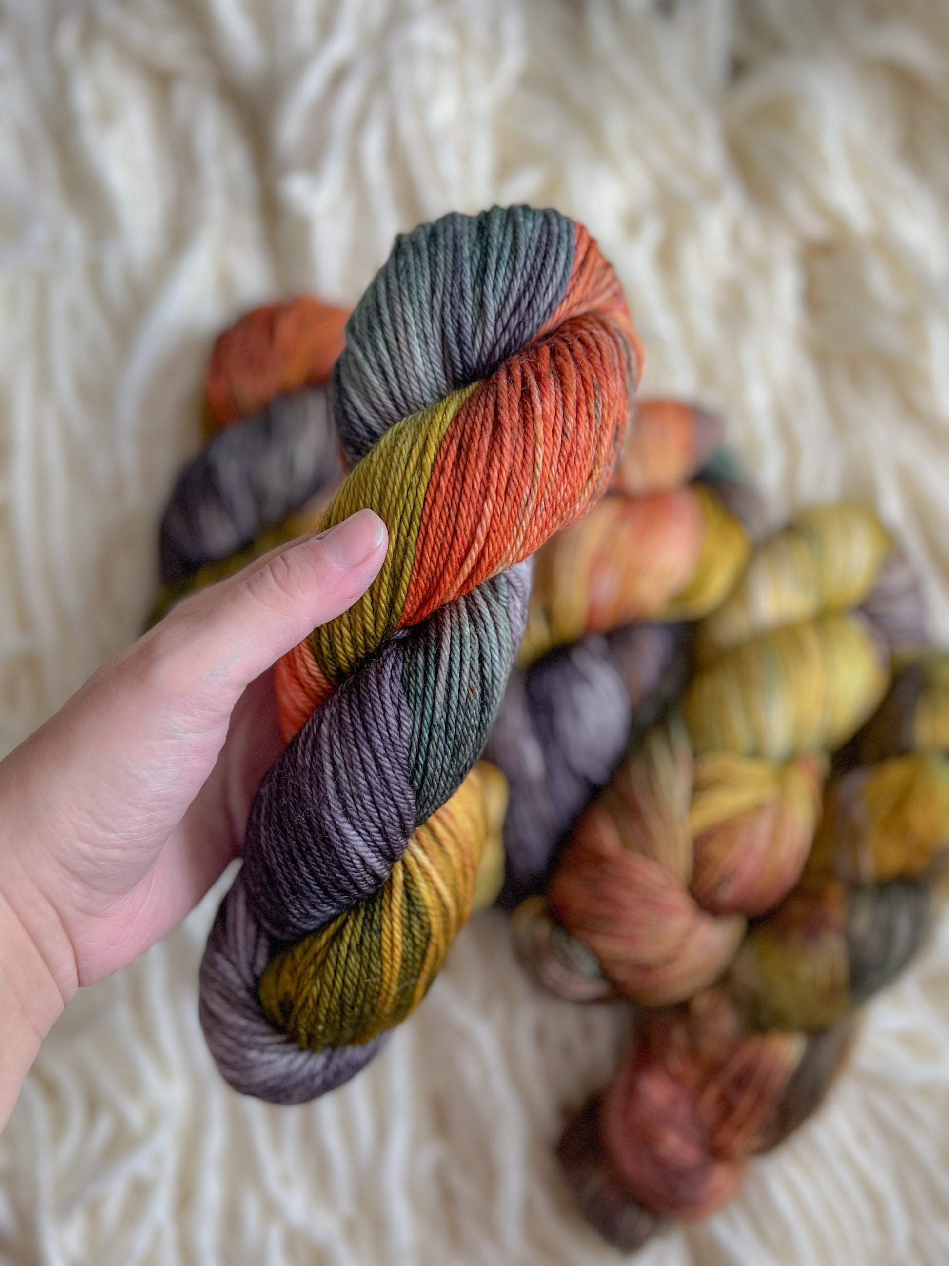 This is the OG Sock Kit meant for crafters who SWEAR their stash is almost under control and absolutely mean it this time. Hand-dyed as a one-of-a-kind colourway, designed to be cast on immediately… or carefully added to the growing “special projects” pile